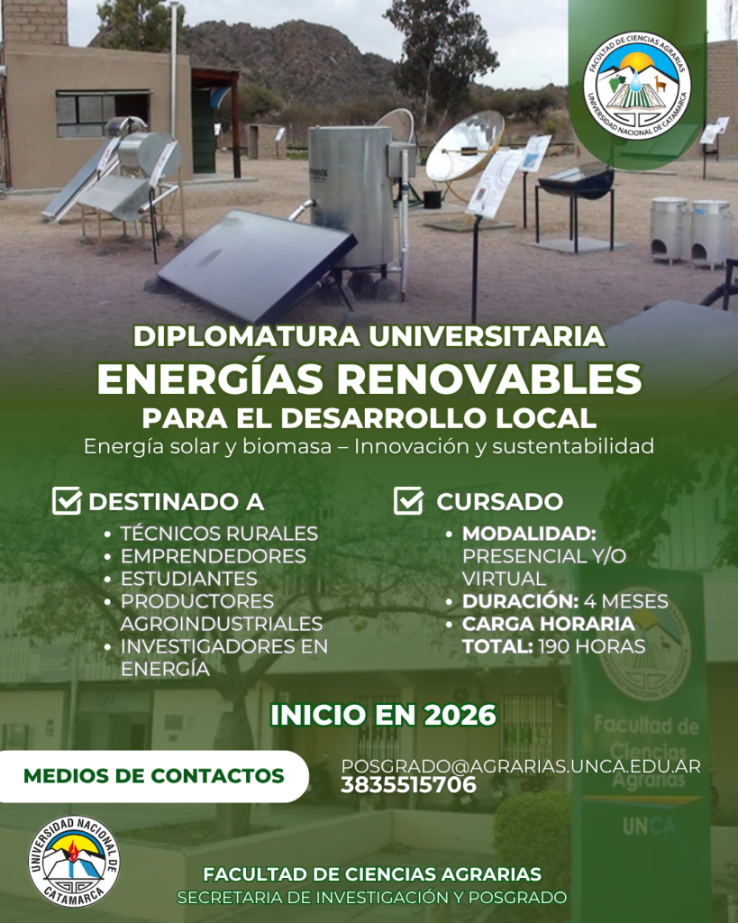A través de estas nuevas ofertas, buscamos acompañar a productores, profesionales, emprendedores y estudiantes en el fortalecimiento de sus capacidades técnicas, promoviendo el uso responsable de los recursos naturales y el aprovechamiento de energías renovables aplicadas al sector agroalimentario.